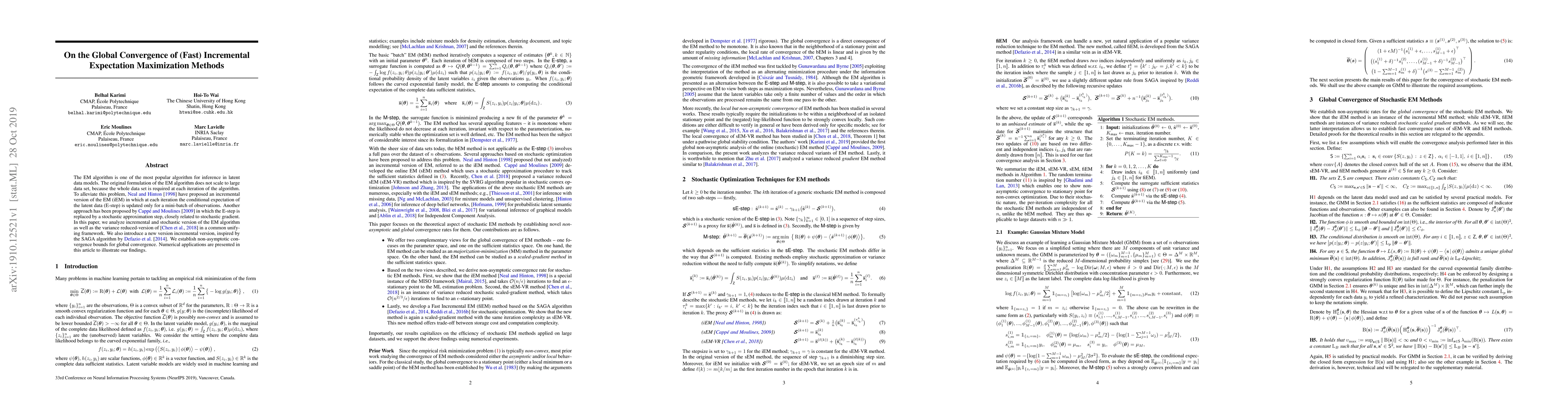 This paper analyzes the convergence of various incremental versions of the EM algorithm for inference in latent data models, establishing non-asymptotic bounds for global convergence.