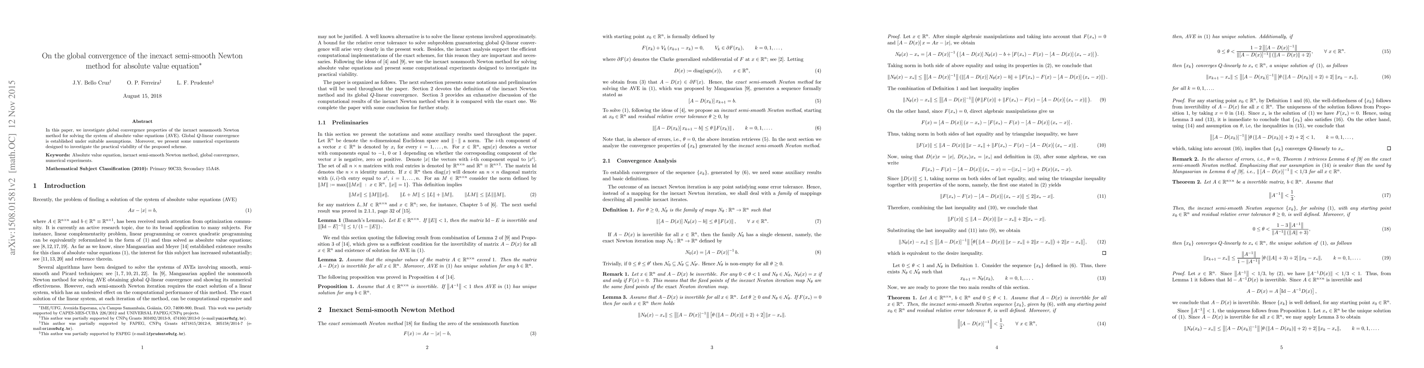 This paper explores the global convergence of the inexact semi-smooth Newton method for solving absolute value equations (AVE), establishing global $Q$-linear convergence under specific conditions and validating the method through numerical experiments.
