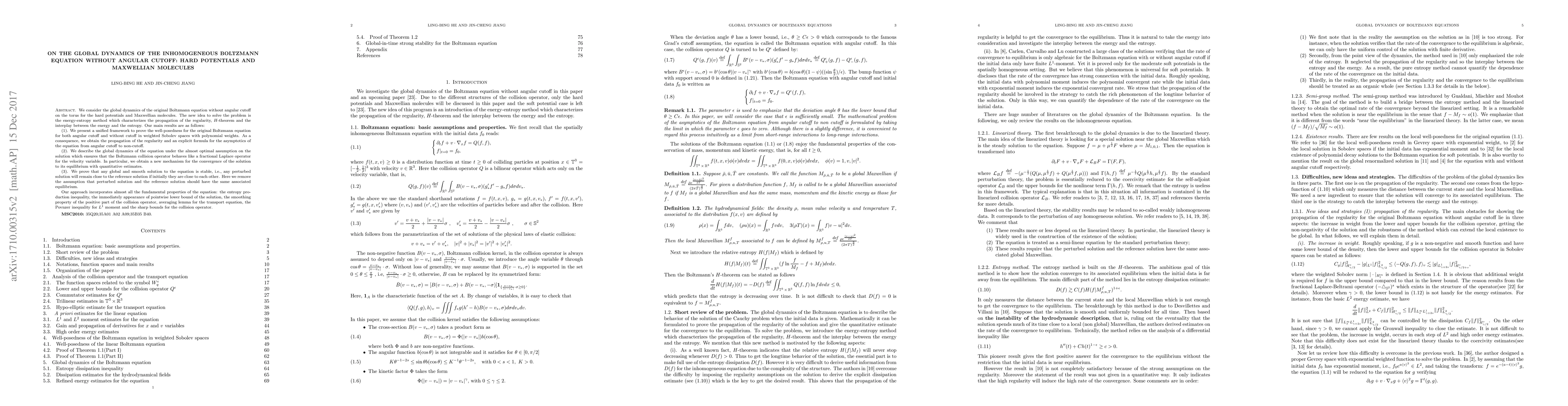 This paper establishes a unified framework for the global dynamics of the inhomogeneous Boltzmann equation without angular cutoff, focusing on hard potentials and Maxwellian molecules. Utilizing the energy-entropy method, it proves well-posedness, describes the global dynamics, and demonstrates stability of solutions, providing quantitative estimates for convergence to equilibrium.