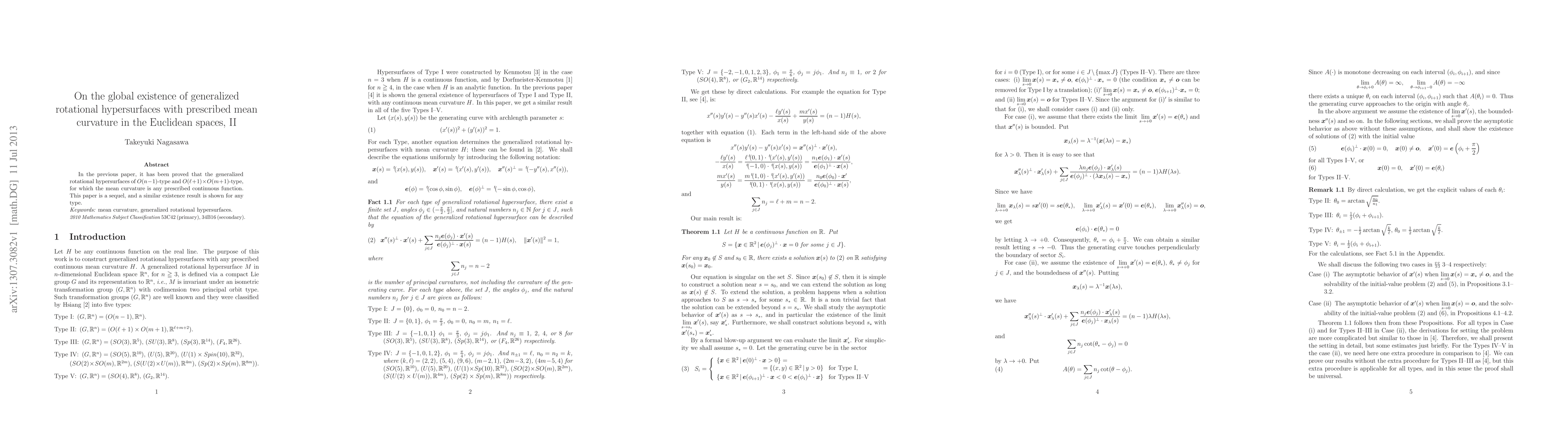 Summary: This paper extends the results of a previous study, proving the global existence of generalized rotational hypersurfaces in Euclidean spaces where the mean curvature is a prescribed continuous function, regardless of the hypersurface type. The methodology confirms the existence for all types of hypersurfaces.
