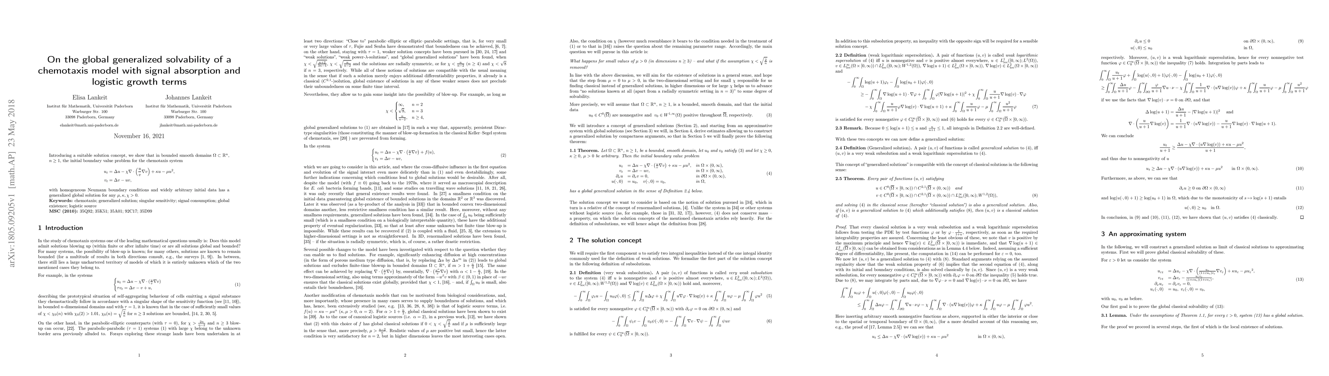 Introducing a suitable solution concept, we show that in bounded smooth domains $\Omega\subset \mathbb{R}^n$, $n\ge 1$, the initial boundary value problem for the chemotaxis system \begin{align*} u_t&=\Delta u -\chi\nabla\cdot\left(\frac{u}{v}\nabla v\right)+\kappa u -\mu u^2,\\ v_t&=\Delta v -uv, \end{align*} with homogeneous Neumann boundary conditions and widely arbitrary initial data has a generalized global solution for any $\mu, \kappa, \chi >0$.