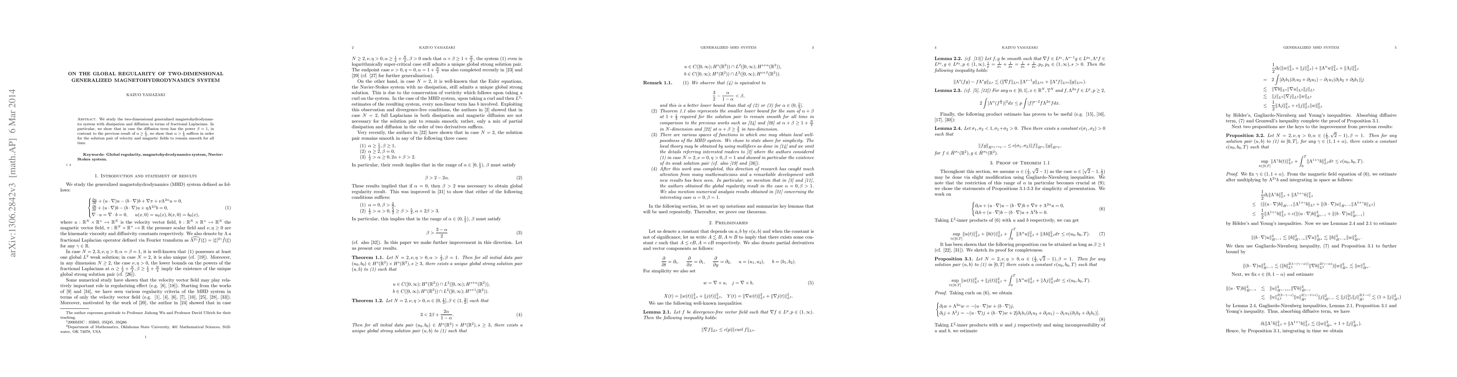 This paper investigates the global regularity of the two-dimensional generalized magnetohydrodynamics system with fractional Laplacian diffusion. It demonstrates that when the diffusion term has a power $\beta = 1$, $\alpha > \frac{1}{3}$ is sufficient for smooth solutions, improving upon previous results requiring $\alpha \geq \frac{1}{2}$.