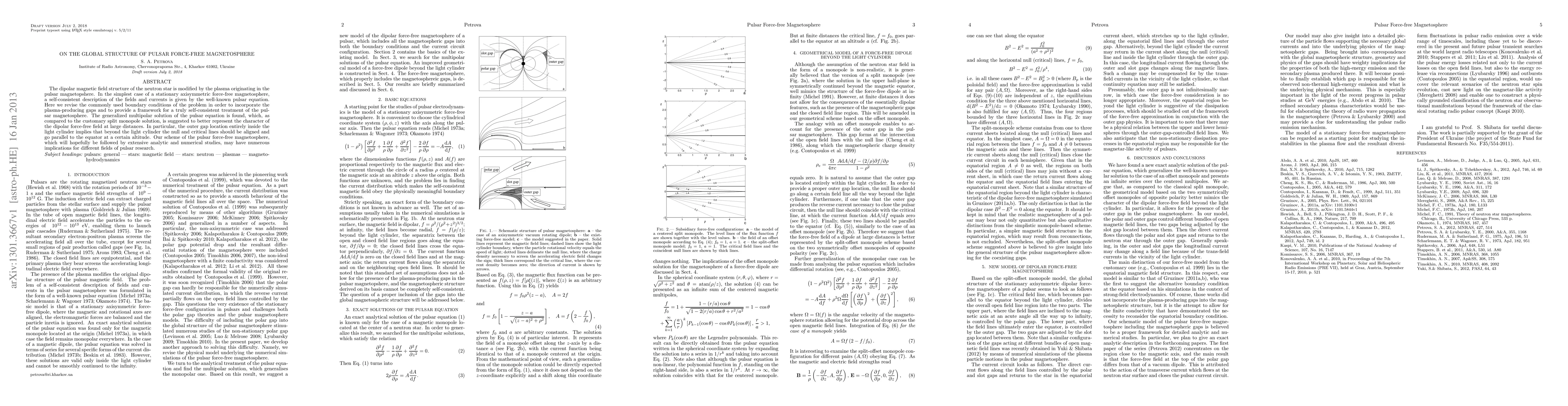 The research used a combination of analytical and numerical methods to study the pulsar force-free magnetosphere.