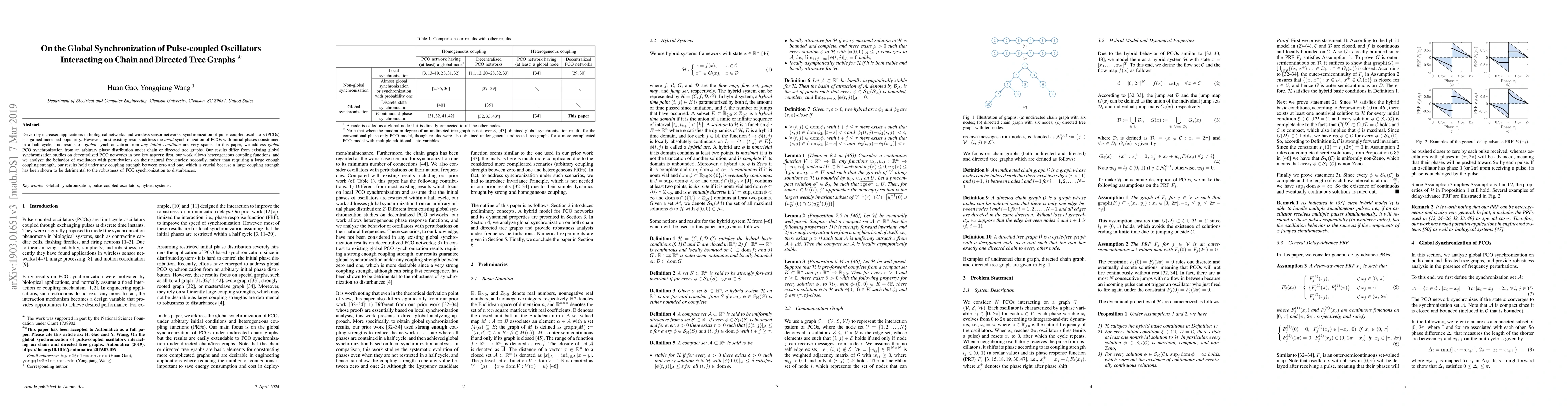 This paper investigates global synchronization of pulse-coupled oscillators (PCOs) on chain and directed tree graphs, addressing synchronization from arbitrary initial phase conditions. Unlike prior studies, the research allows for heterogeneous coupling functions and oscillator perturbations, and it achieves synchronization under any coupling strength between zero and one, enhancing robustness against disturbances.