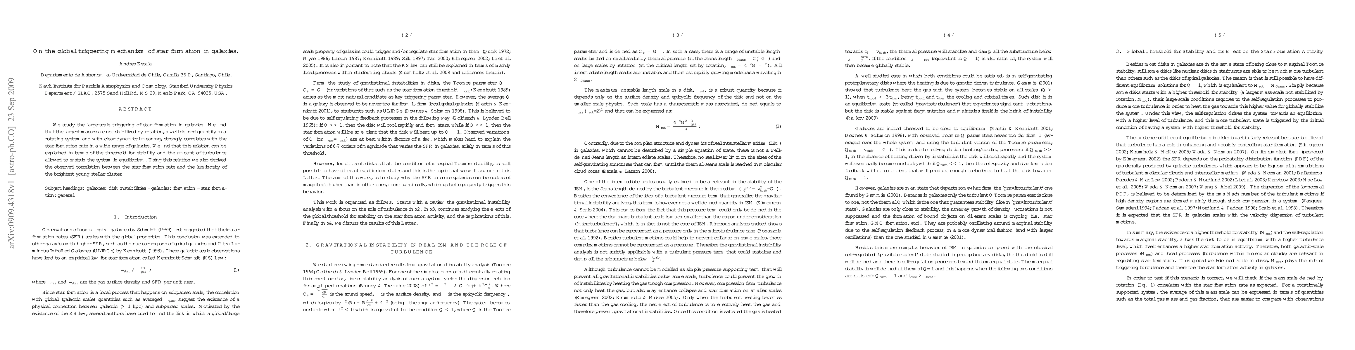 We study the large-scale triggering of star formation in galaxies. We find that the largest mass-scale not stabilized by rotation, a well defined quantity in a rotating system and with clear dynamical meaning, strongly correlates with the star formation rate in a wide range of galaxies. We find that this relation can be explained in terms of the threshold for stability and the amount of turbulence allowed to sustain the system in equilibrium. Using this relation we also derived the observed correlation between the star formation rate and the luminosity of the brightest young stellar cluster.