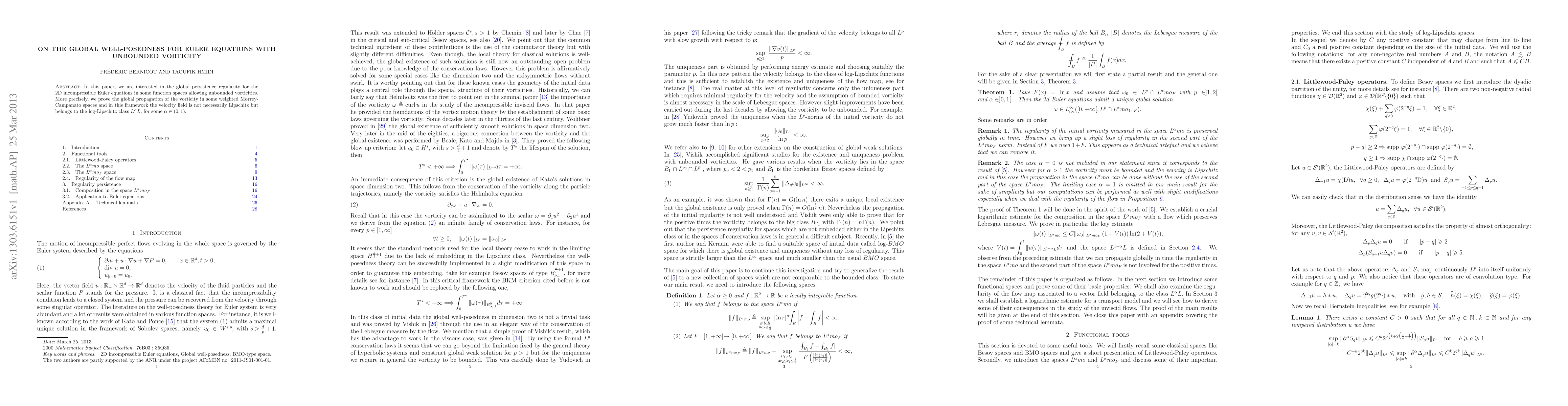 This paper investigates global persistence regularity for 2D incompressible Euler equations with unbounded vorticity, proving propagation of vorticity in weighted Morrey-Campanato spaces.