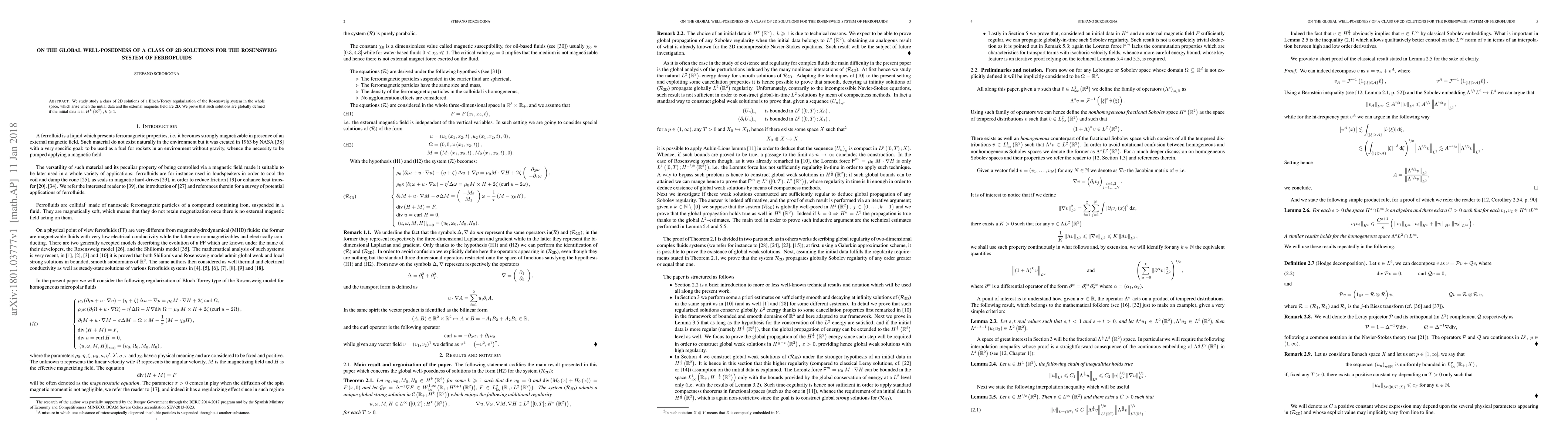 We study study a class of 2D solutions of a Bloch-Torrey regularization of the Rosensweig system in the whole space, which arise when the initial data and the external magnetic field are 2D. We prove that such solutions are globally defined if the initial data is in $ H^k\left(\mathbb{R}^2\right), k\geqslant 1 $.