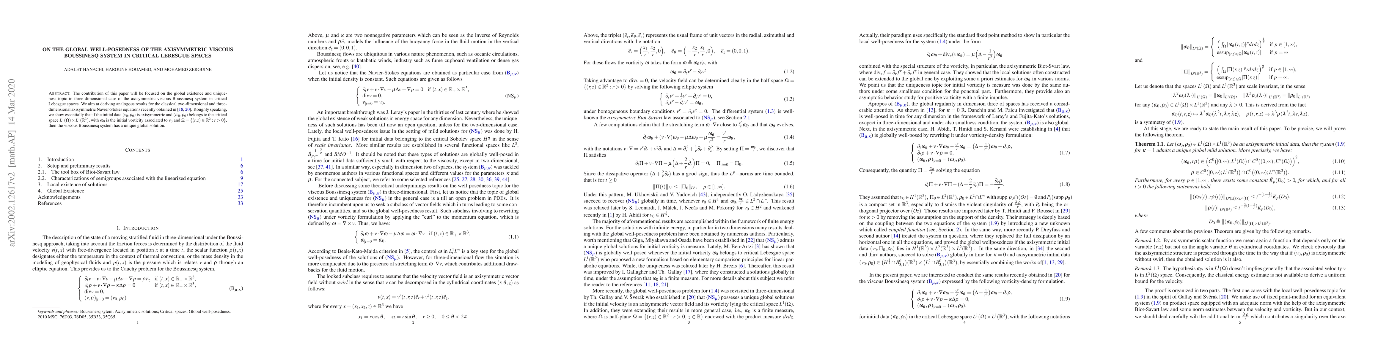 This paper investigates the global well-posedness of the three-dimensional axisymmetric viscous Boussinesq system in critical Lebesgue spaces, proving the existence and uniqueness of global solutions under specific initial data conditions. The results extend analogous findings for the axisymmetric Navier-Stokes equations.