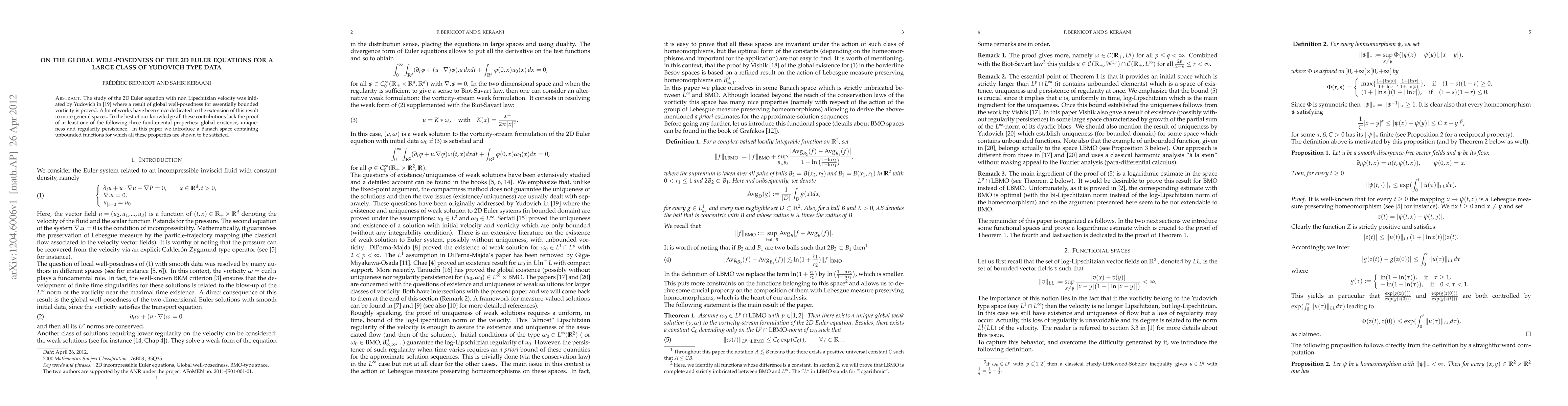The study of the 2D Euler equation with non Lipschitzian velocity was initiated by Yudovich in [19] where a result of global well-posedness for essentially bounded vorticity is proved. A lot of works have been since dedicated to the extension of this result to more general spaces. To the best of our knowledge all these contributions lack the proof of at least one of the following three fundamental properties: global existence, uniqueness and regularity persistence. In this paper we introduce a Banach space containing unbounded functions for which all these properties are shown to be satisfied.