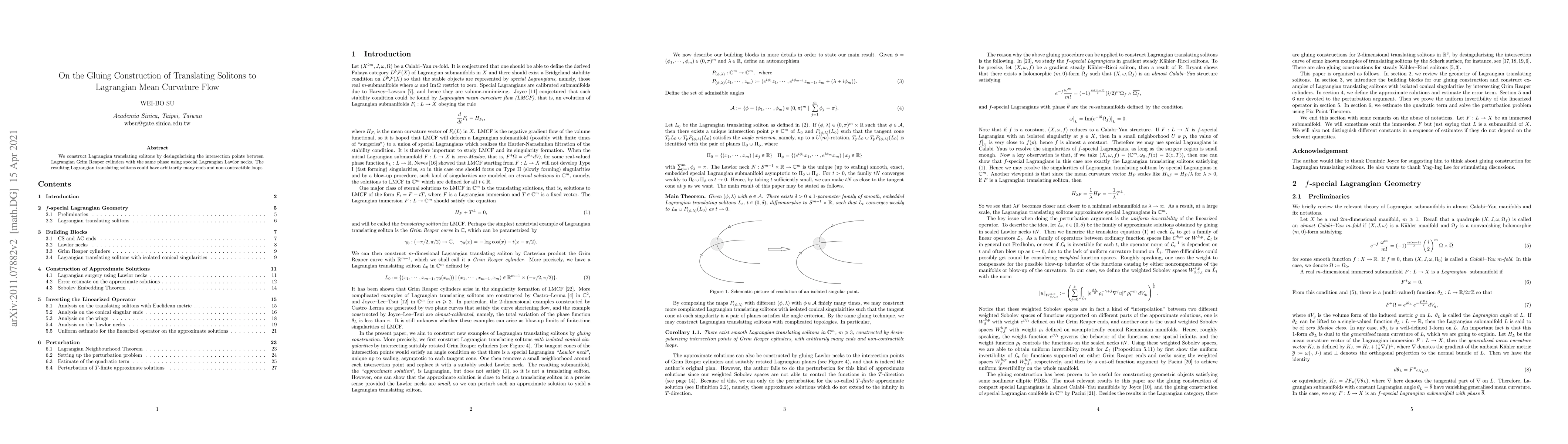 Researchers created a new type of Lagrangian soliton with arbitrarily many ends and non-contractible loops by connecting special Lagrangian necks to Grim Reaper cylinders.