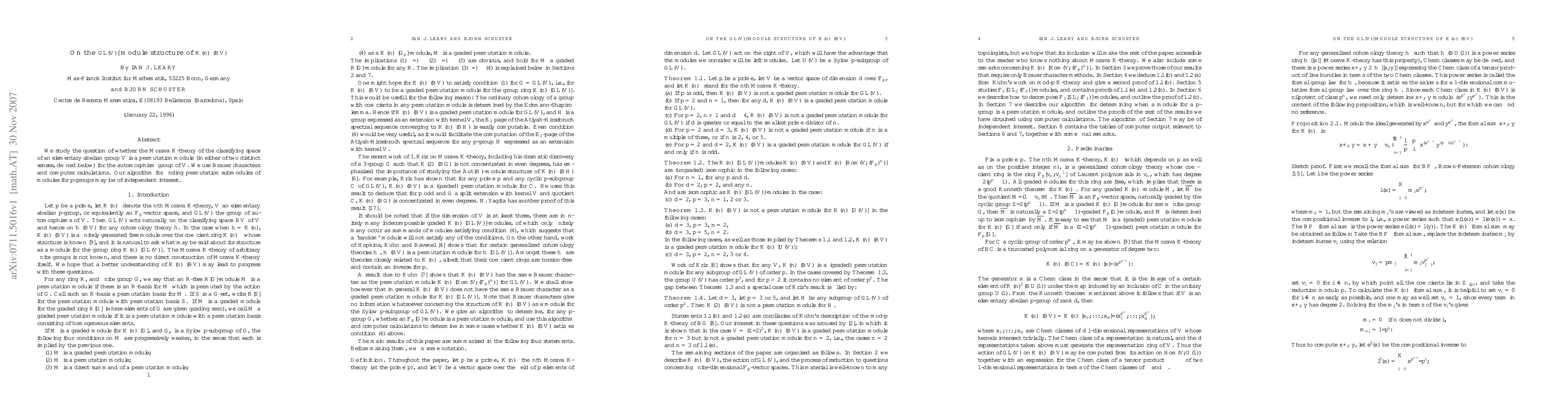We study the question of whether the Morava K-theory of the classifying space of an elementary abelian group V is a permutation module (in either of two distinct senses) for the automorphism group of V. We use Brauer characters and computer calculations. We construct and implement an algorithm for finding permutation submodules of maximal dimension inside modules for p-groups in characteristic p.