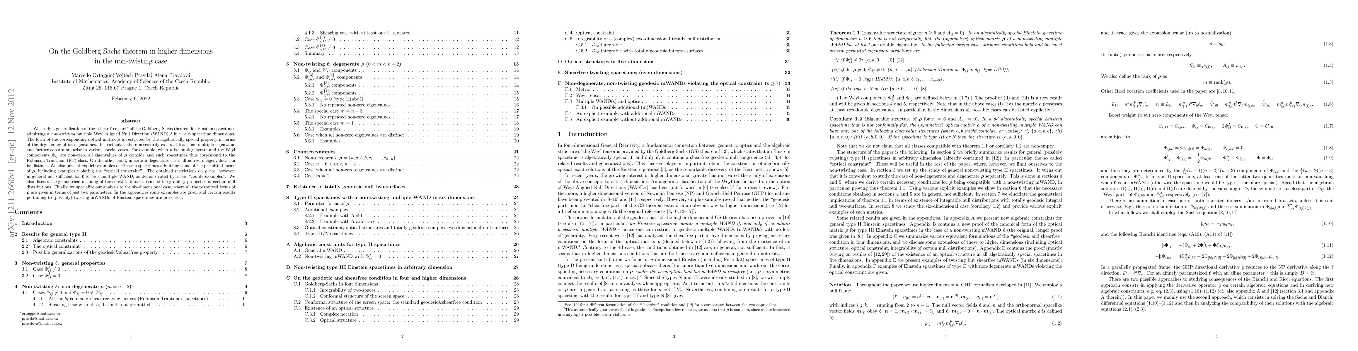 This paper generalizes the "shear-free part" of the Goldberg-Sachs theorem for Einstein spacetimes with a non-twisting multiple Weyl Aligned Null Direction in dimensions n ≥ 6, exploring the optical matrix's eigenvalue degeneracy and its implications for spacetime classification, including Robinson-Trautman class and counterexamples.