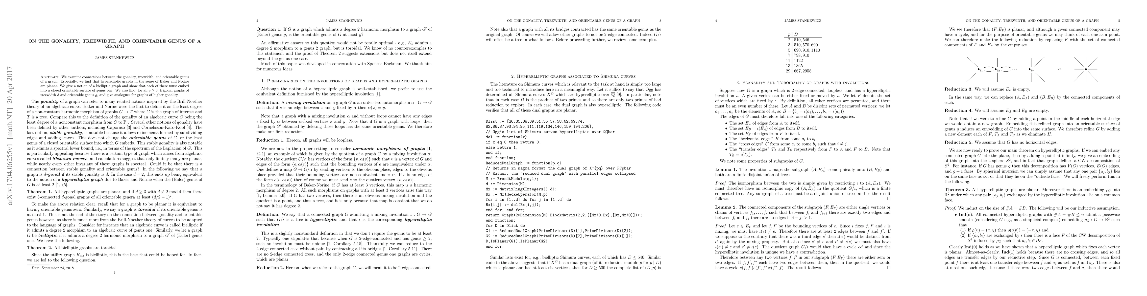 This paper explores relationships between gonality, treewidth, and orientable genus in graphs, proving that hyperelliptic graphs are planar, bielliptic graphs embed in genus one surfaces, and finding trigonal graphs of treewidth 3 and orientable genus $g$ for all $g\ge 0$.