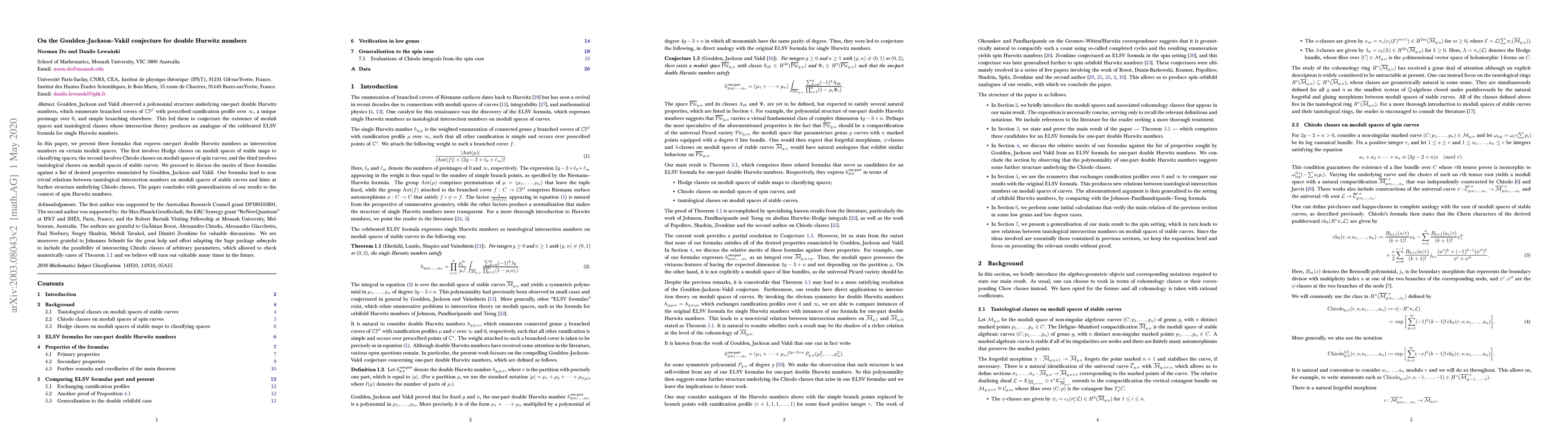Goulden, Jackson and Vakil observed a polynomial structure underlying one-part double Hurwitz numbers, which enumerate branched covers of $\mathbb{CP}^1$ with prescribed ramification profile over $\infty$, a unique preimage over 0, and simple branching elsewhere. This led them to conjecture the existence of moduli spaces and tautological classes whose intersection theory produces an analogue of the celebrated ELSV formula for single Hurwitz numbers. In this paper, we present three formulas that express one-part double Hurwitz numbers as intersection numbers on certain moduli spaces. The first involves Hodge classes on moduli spaces of stable maps to classifying spaces; the second involves Chiodo classes on moduli spaces of spin curves; and the third involves tautological classes on moduli spaces of stable curves. We proceed to discuss the merits of these formulas against a list of desired properties enunciated by Goulden, Jackson and Vakil. Our formulas lead to non-trivial relations between tautological intersection numbers on moduli spaces of stable curves and hints at further structure underlying Chiodo classes. The paper concludes with generalisations of our results to the context of spin Hurwitz numbers.