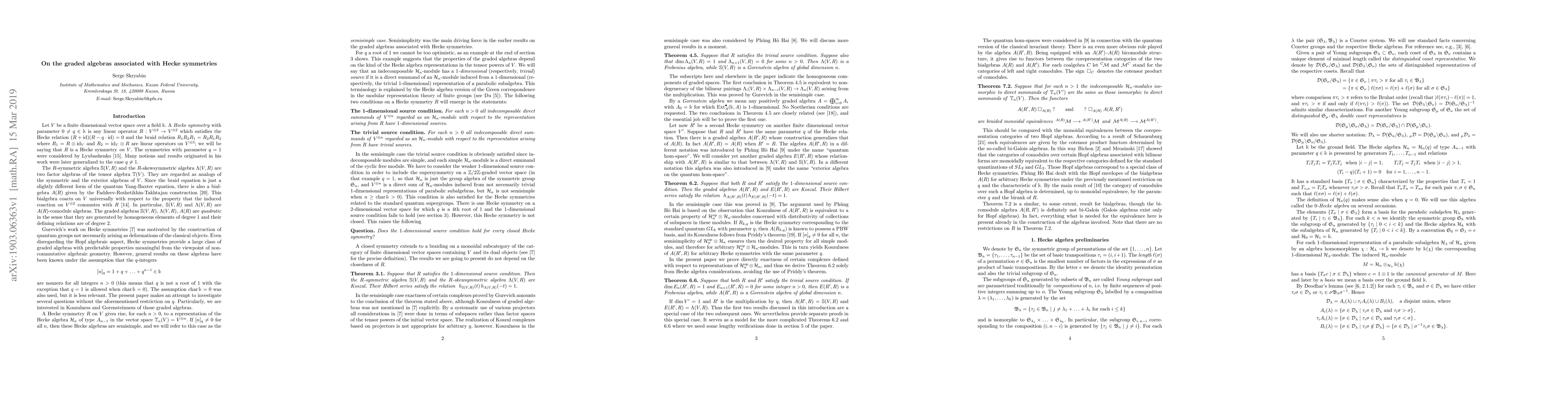 This paper explores graded algebras associated with Hecke symmetries, investigating their Koszulness and Gorensteinness without restrictions on the parameter q. It finds that positive results require specific conditions on indecomposable modules for type A Hecke algebras.