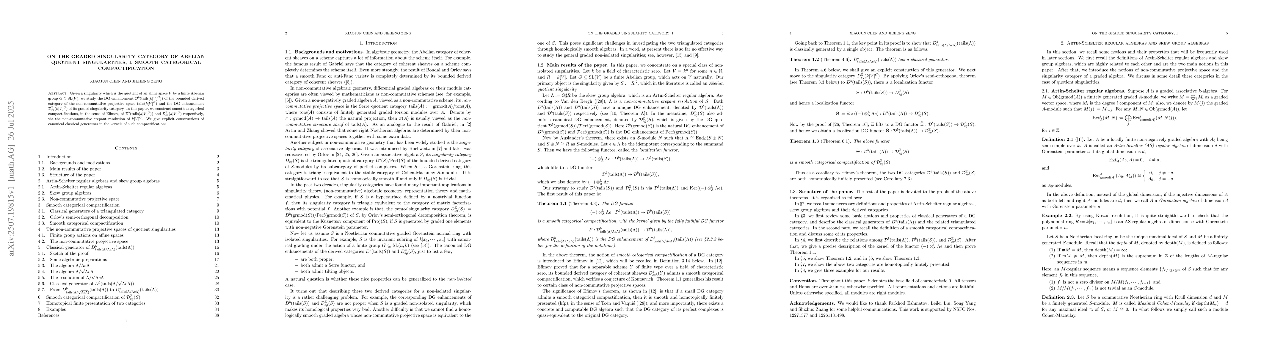 Given a singularity which is the quotient of an affine space $V$ by a finite Abelian group $G \subseteq \mathrm{SL}(V)$, we study the DG enhancement $\mathcal{D}^{b}(\mathrm{tails}(k[V]^G))$ of the bounded derived category of the non-commutative projective space $\mathrm{tails}(k[V]^G)$ and the DG enhancement $\mathcal{D}_{sg}^{\mathbb{Z}}(k[V]^G)$ of its graded singularity category. In this paper, we construct smooth categorical compactifications, in the sense of Efimov, of $\mathcal{D}^b(\mathrm{tails}(k[V]^G))$ and $\mathcal{D}_{sg}^{\mathbb{Z}}(k[V]^G)$ respectively, via the non-commutative crepant resolution of $k[V]^G$. We give explicit constructions of canonical classical generators in the kernels of such compactifications.