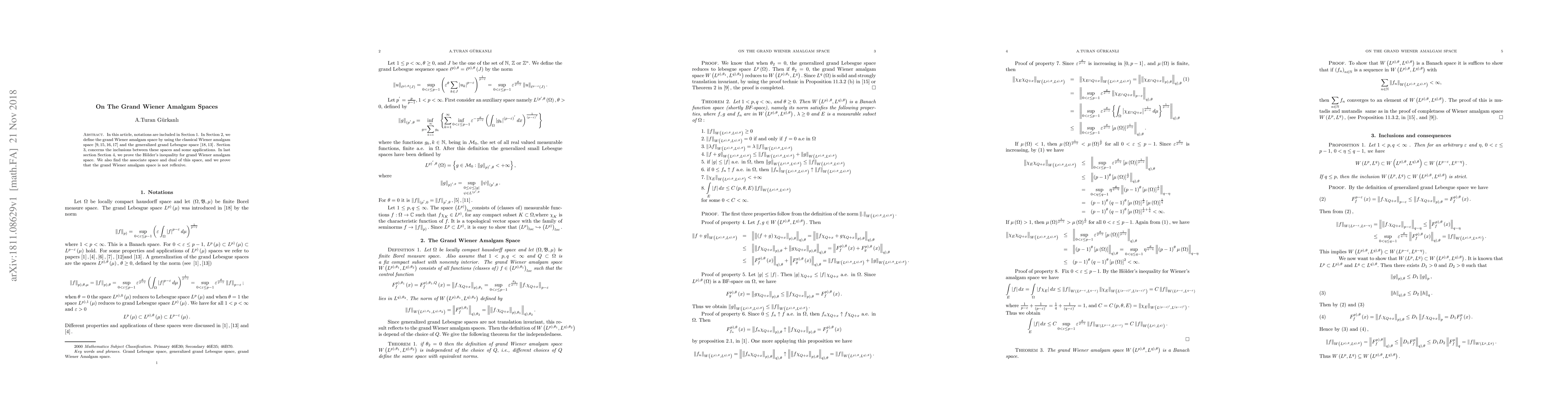 In this article, notations are included in Section 1. In Section 2, we define the grand Wiener amalgam space by using the classical Wiener amalgam space [9, 15, 16, 17] and the generalized grand Lebesgue space [18, 13] . Section 3, concerns the inclusions between these spaces and some applications. In last section Section 4, we prove the Holders inequality for grand Wiener amalgam space. We also find the associate space and dual of this space, and we prove that the grand Wiener amalgam space is not reflexive.