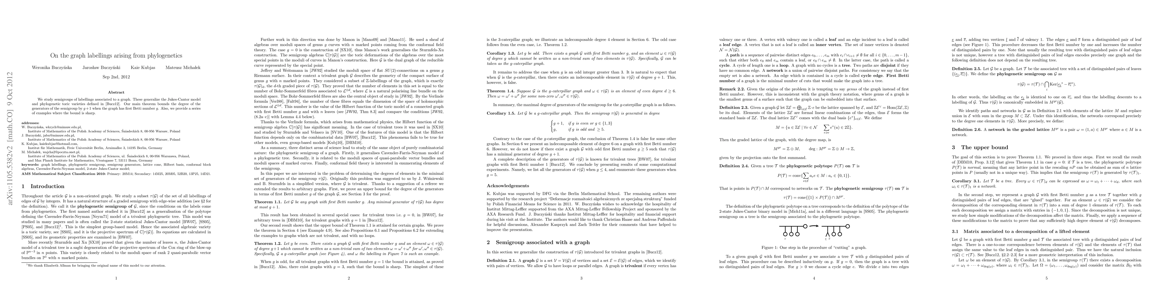 We study semigroups of labellings associated to a graph. These generalize the Jukes-Cantor model and phylogenetic toric varieties defined by Buczy\'nska. Our main theorem bounds the degree of the generators of the semigroup by g+1 when the graph has first Betti number g. Also, we provide a series of examples where the bound is sharp.