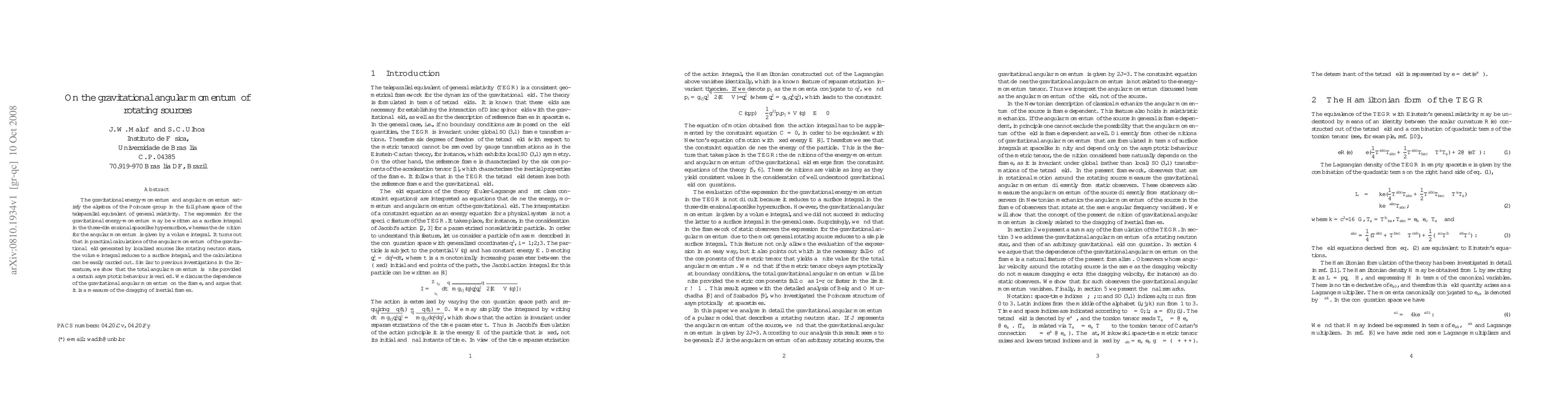 This paper investigates the gravitational angular momentum in the context of the teleparallel equivalent of general relativity, demonstrating that its calculation simplifies to a surface integral for localized rotating sources. It concludes that the total angular momentum is finite under specific asymptotic conditions and highlights its role in measuring inertial frame dragging.