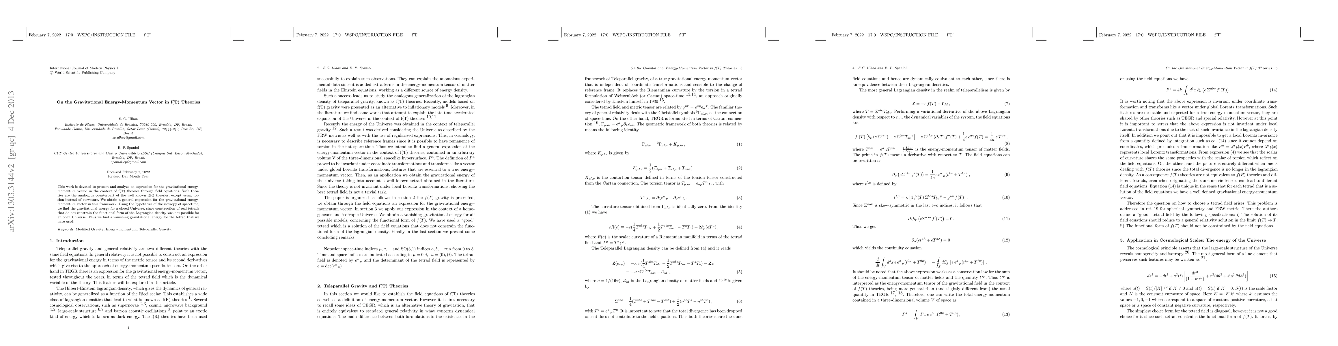 This paper investigates the gravitational energy-momentum vector in f(T) theories, analogous to f(R) theories but based on torsion instead of curvature. It derives a general expression for gravitational energy-momentum and compares the resulting Universe's energy with that in teleparallelism equivalent to general relativity (TEGR).