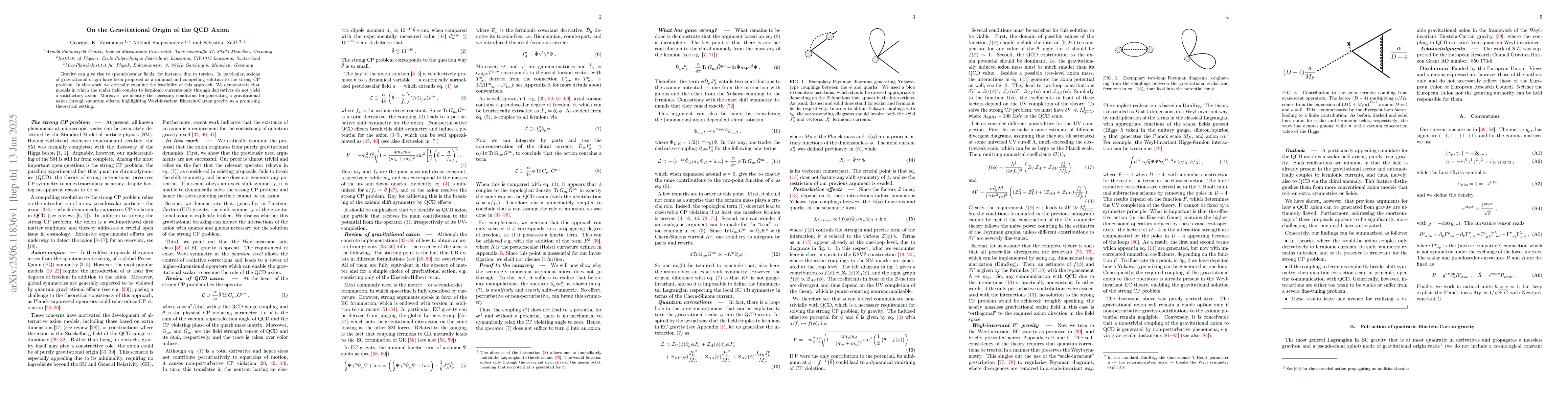 Gravity can give rise to (pseudo)scalar fields, for instance due to torsion. In particular, axions of gravitational origin have been proposed as a minimal and compelling solution to the strong CP problem. In this work, we critically examine the feasibility of this approach. We demonstrate that models in which the scalar field couples to fermionic currents only through derivatives do not yield a satisfactory axion. Moreover, we identify the necessary conditions for generating a gravitational axion through quantum effects, highlighting Weyl-invariant Einstein-Cartan gravity as a promising theoretical setting.