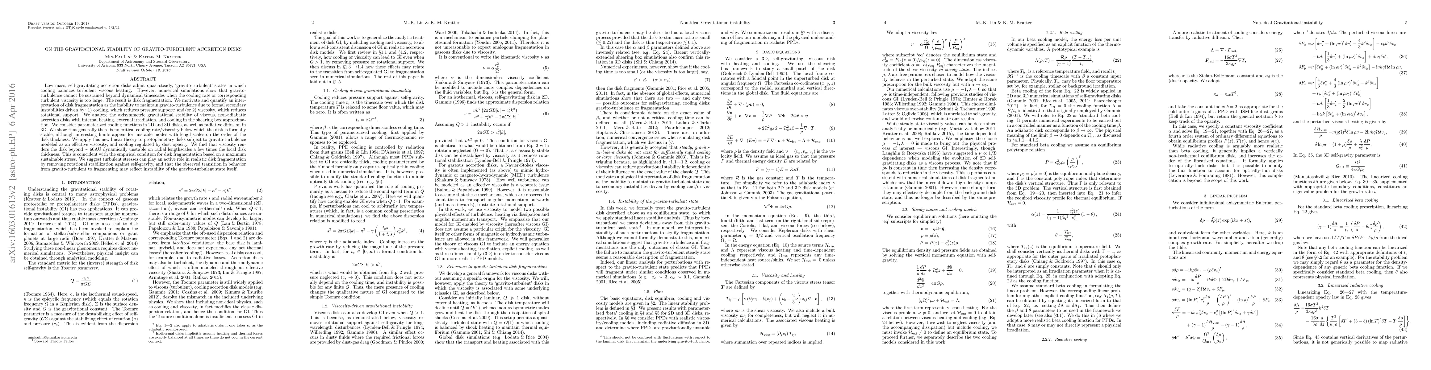 This paper investigates the gravitational stability of gravito-turbulent accretion disks, finding that high cooling rates or viscosities lead to disk fragmentation due to secondary instabilities reducing pressure and rotational support. It concludes that turbulent stresses may destabilize the disk, causing fragmentation beyond a certain radius.