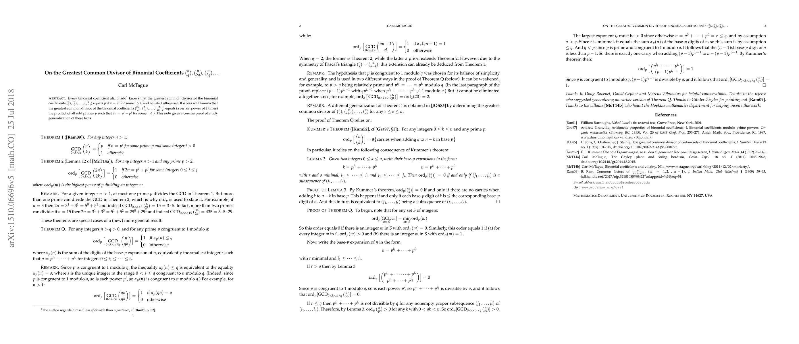 This paper explores the greatest common divisor (GCD) of binomial coefficients of the form ${n \choose kq}$ for various integer values of $k$. It generalizes known results about the GCD of binomial coefficients, providing a concise proof for the GCD involving specific powers of primes and their combinations.