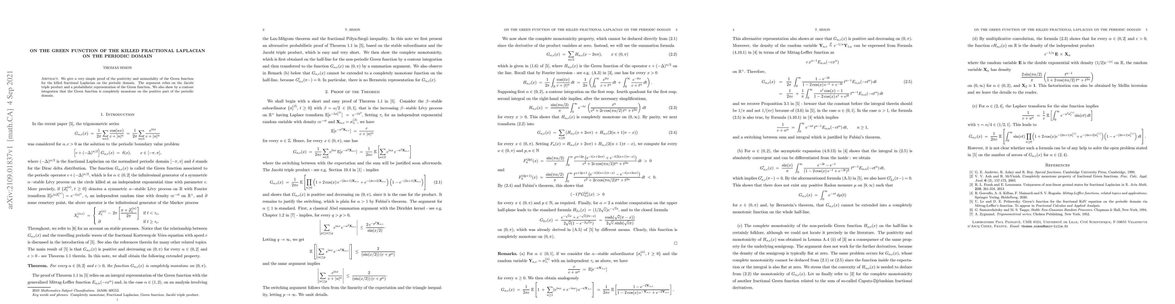 The paper proves that the Green function for the killed fractional Laplacian on a periodic domain is both positive and unimodal, with a simple proof using the Jacobi triple product and probabilistic representation.