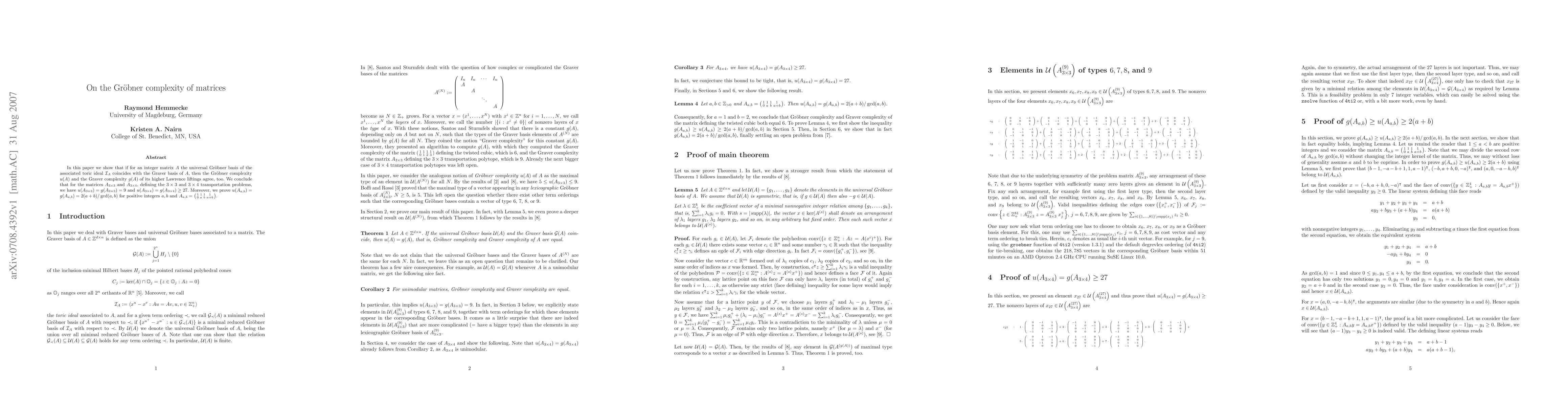 In this paper we show that if for an integer matrix A the universal Gr\"obner basis of the associated toric ideal \Ideal_A coincides with the Graver basis of A, then the Gr\"obner complexity u(A) and the Graver complexity g(A) of its higher Lawrence liftings agree, too. We conclude that for the matrices A_{3\times 3} and A_{3\times 4}, defining the 3\times 3 and 3\times 4 transportation problems, we have u(A_{3\times 3})=g(A_{3\times 3})=9 and u(A_{3\times 4})=g(A_{3\times 4})\geq 27. Moreover, we prove u(A_{a,b})=g(A_{a,b})=2(a+b)/\gcd(a,b) for positive integers a,b and A_{a,b}=(\begin{smallmatrix} 1 & 1 & 1 & 1 0 & a & b & a+b \end{smallmatrix}).