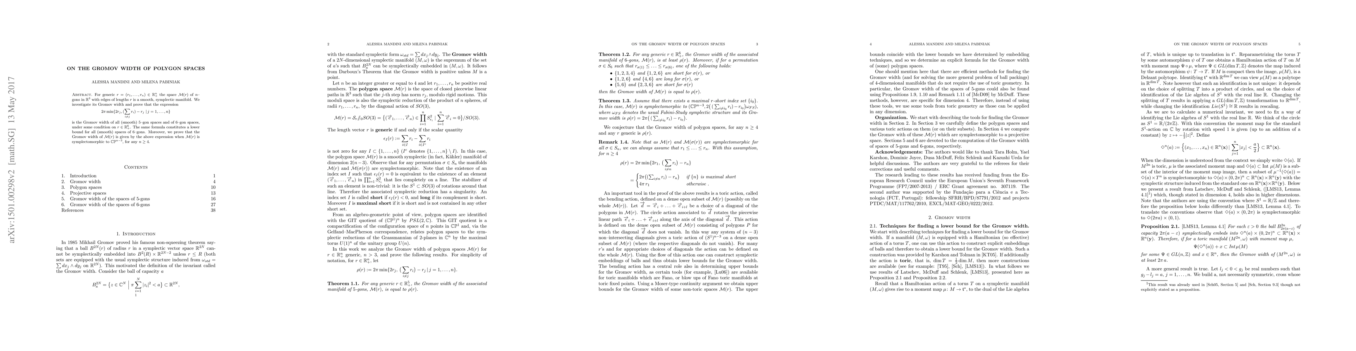 The paper investigates the Gromov width of polygon spaces in 3D space, finding that a specific formula provides a lower bound for 5- and 6-gon spaces, and is equal to this bound when the space is symplectomorphic to a complex projective space.