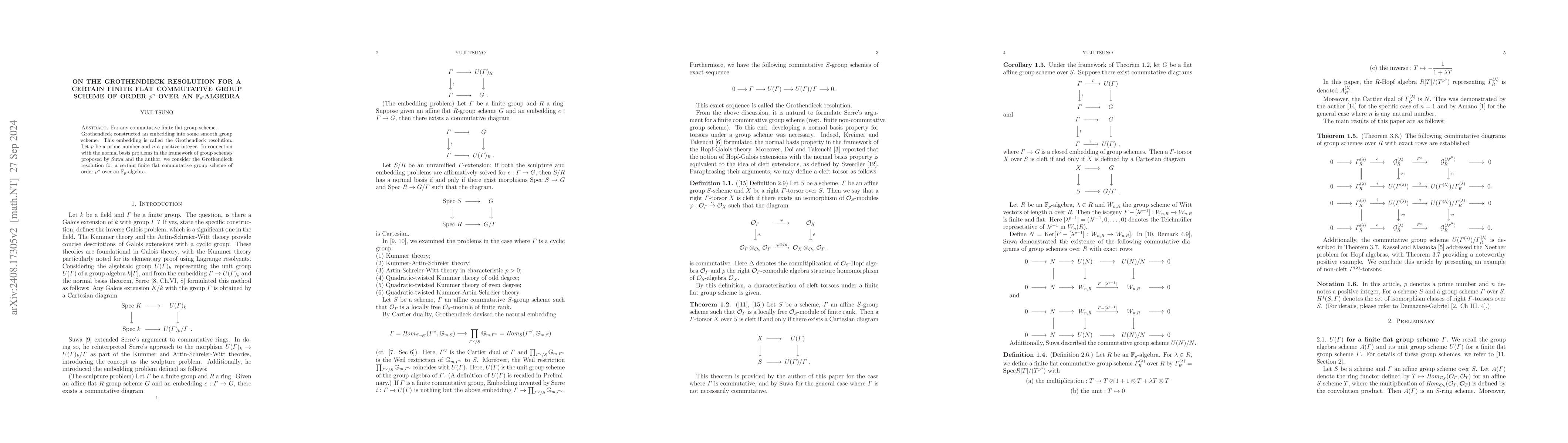 Summary: This paper explores the Grothendieck resolution for a specific finite flat commutative group scheme of order $p^n$ over an $\Bbb{F}_{p}$-algebra, relating it to normal basis problems in group schemes, and extends Grothendieck's embedding construction for such schemes.