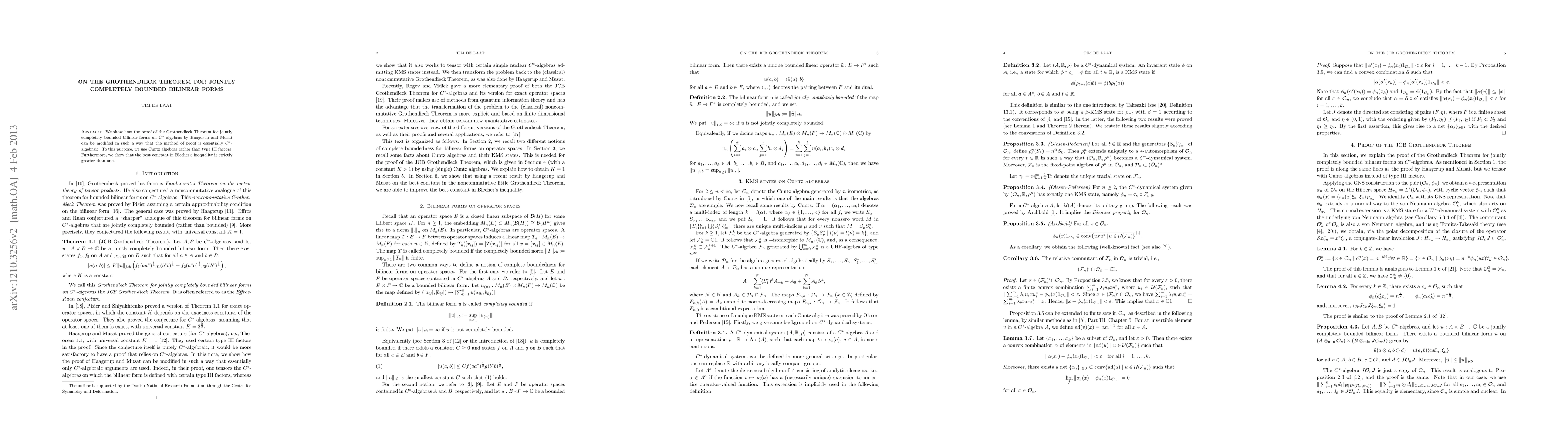 Researchers modified the proof of a theorem on jointly completely bounded bilinear forms to make it C*-algebraic, using Cuntz algebras instead of type III factors. They also found that Blecher's inequality has a best constant greater than one.