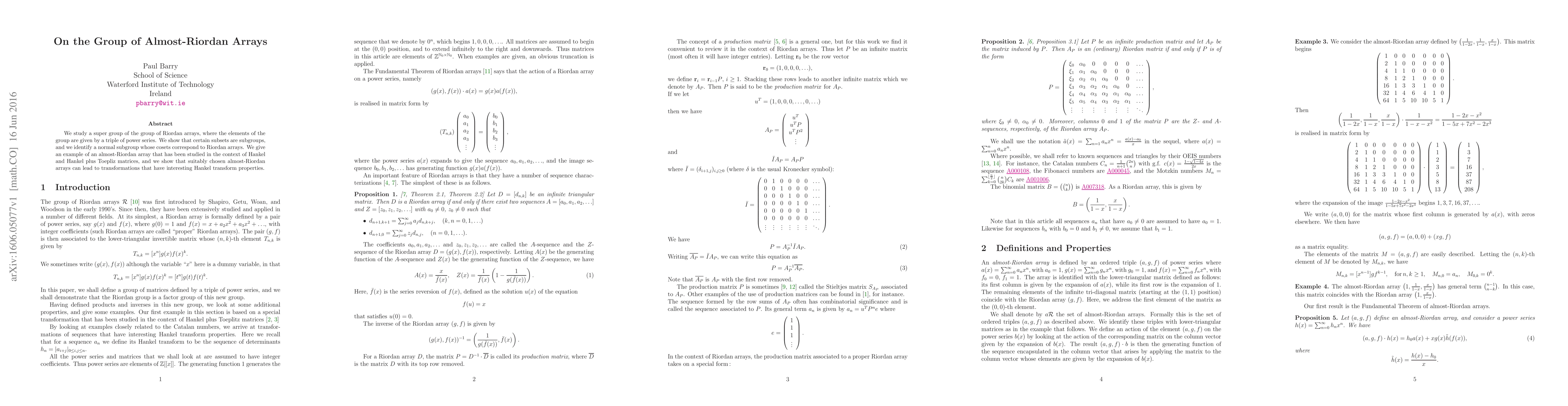 This paper explores the super group of Riordan arrays, characterized by a triple of power series, identifying subgroups and a normal subgroup linked to Riordan arrays. It also demonstrates how specific almost-Riordan arrays can yield transformations with notable Hankel transform properties.