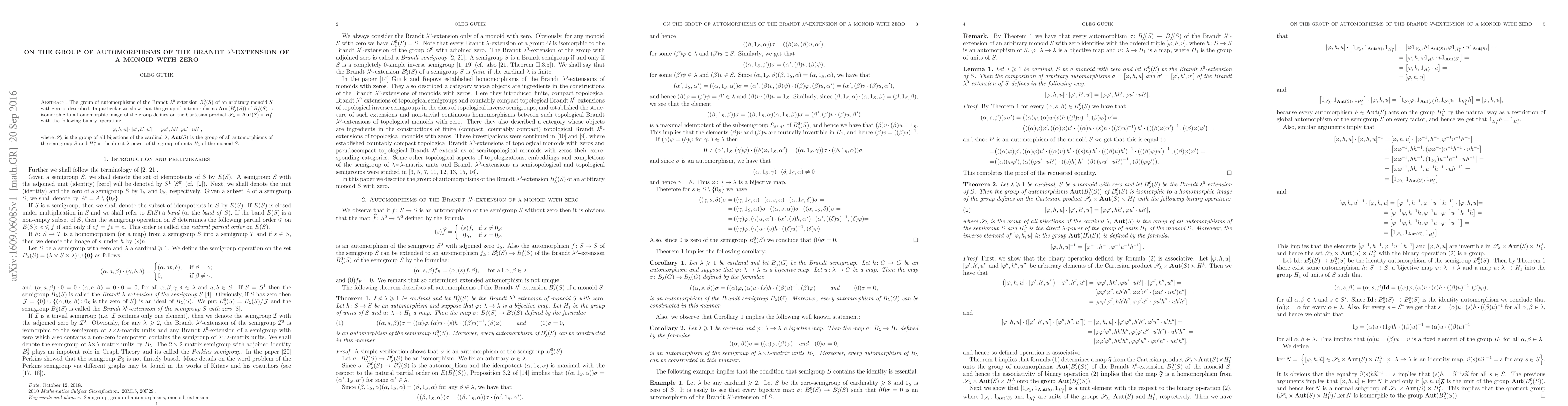 The paper establishes a clear isomorphism between the group of automorphisms of Brandt $\lambda^0$-extensions and a homomorphic image of $\mathscr{S}_{\lambda}\times \mathbf{Aut}(S)\times H_1^{\lambda}$.