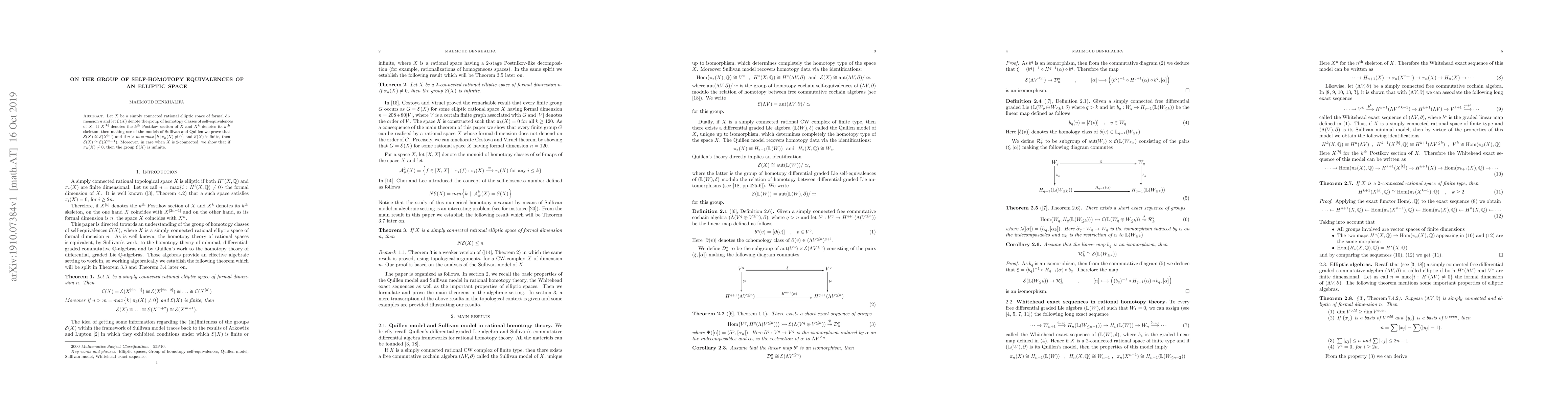 The research employs algebraic topology techniques, specifically focusing on elliptic spaces, Sullivan models, and Quillen models to analyze the group of self-homotopy equivalences.