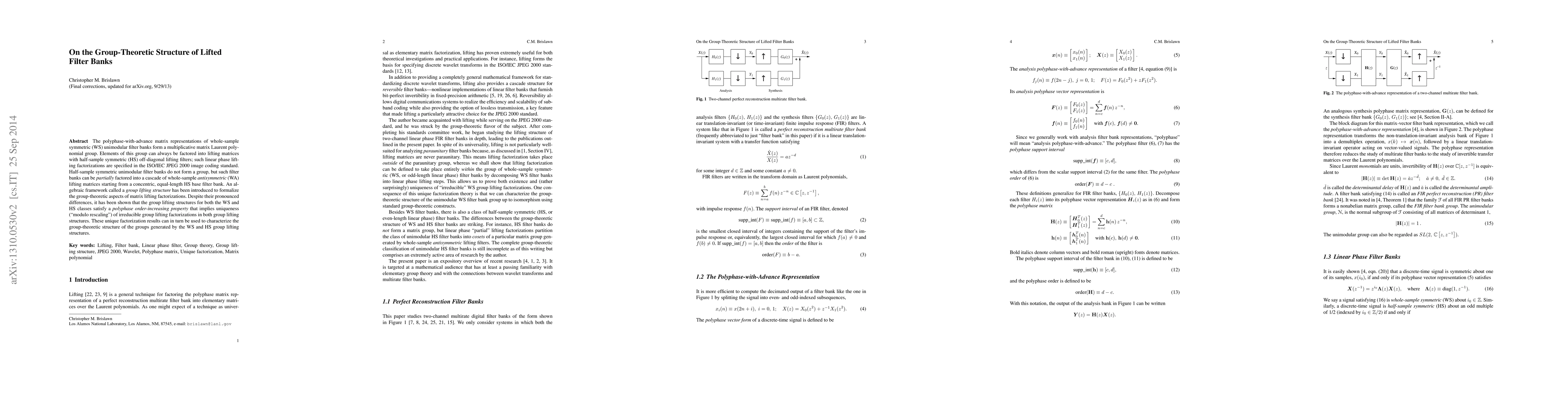 Research shows that whole-sample symmetric filter banks can be factorized into unique lifting matrices with half-sample symmetric filters, while half-sample symmetric filters lack group structure but can be partially factorized into a specific type of lifting matrix.