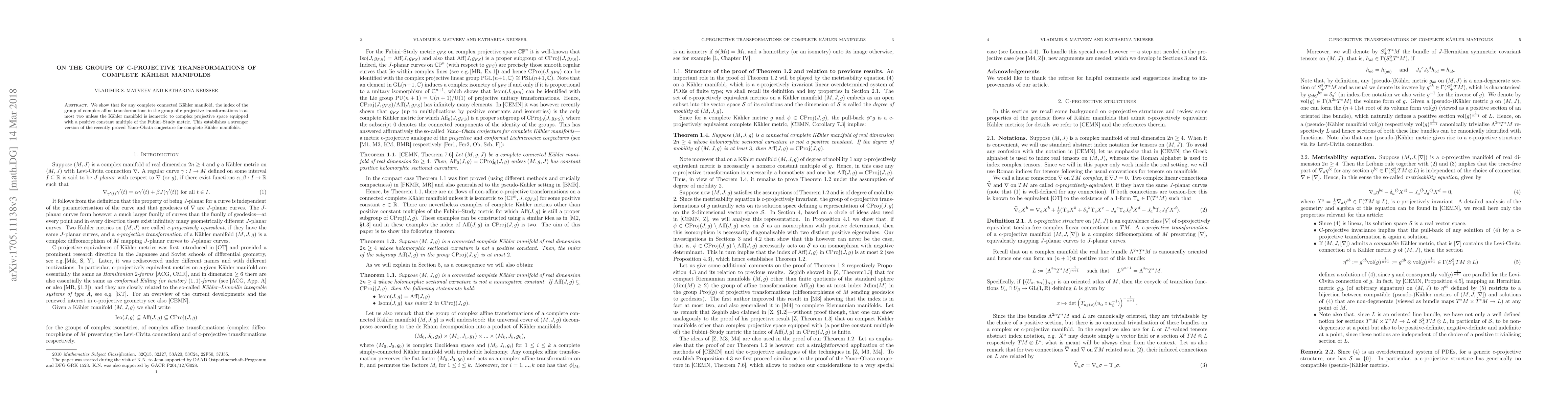 A recent study found that complete connected K"ahler manifolds have a group of c-projective transformations with an index of at most two, except for specific cases like complex projective space.