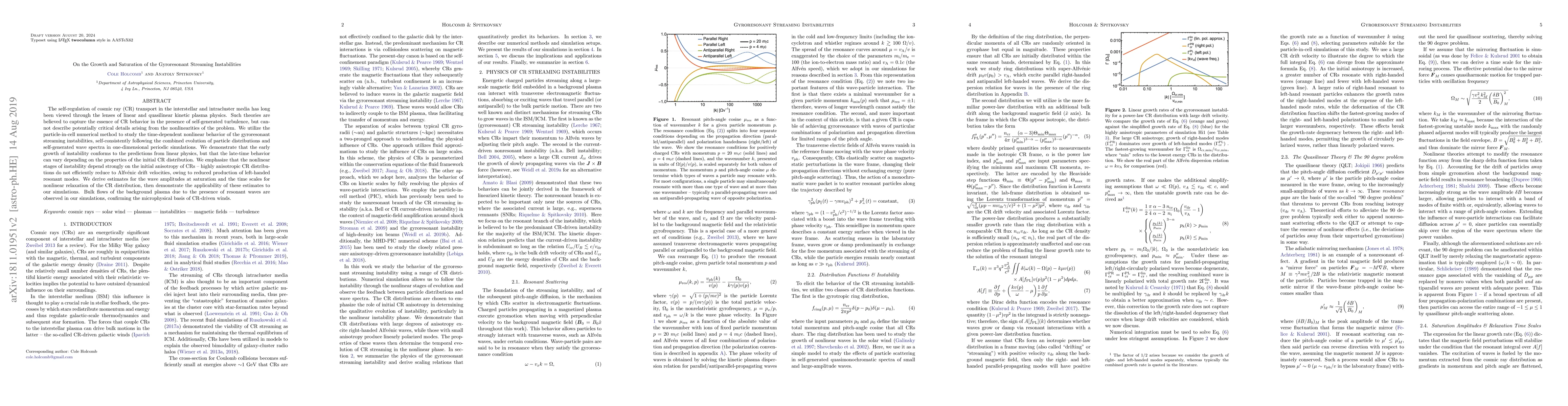 This study uses particle-in-cell simulations to analyze the nonlinear growth of gyroresonant streaming instabilities in cosmic ray (CR) transport. It finds that while early instability growth follows linear predictions, late-time behavior depends on initial CR distribution anisotropy. Highly anisotropic CR distributions don't efficiently reach Alfvenic drift velocities. The research derives estimates for wave amplitudes at saturation and CR distribution relaxation time scales, supported by observed plasma bulk flows driven by resonant waves, indicating CR-driven winds' microphysical basis.