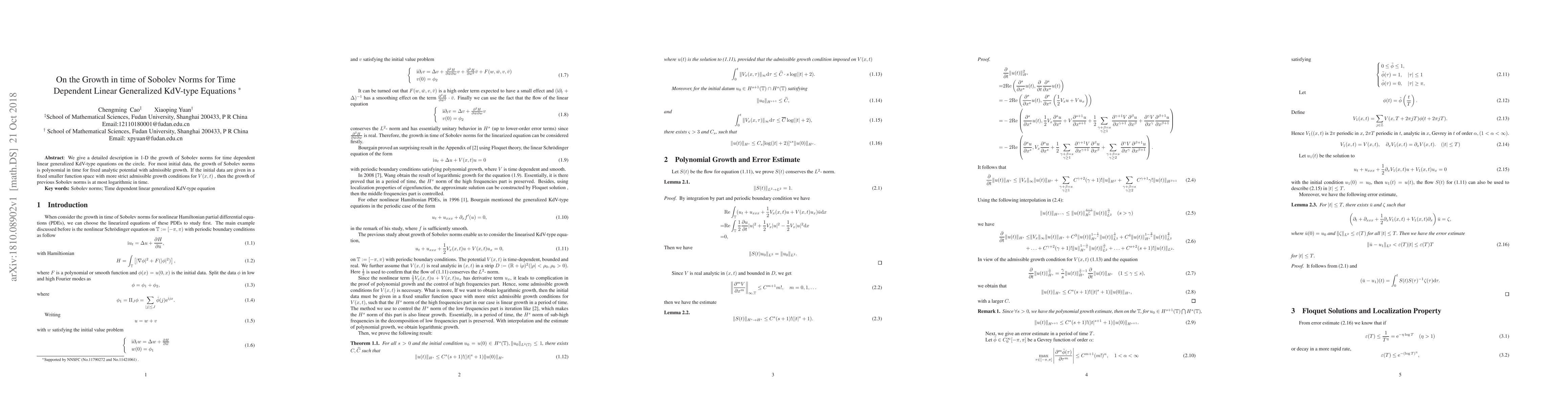 We give a detailed description in 1-D the growth of Sobolev norms for time dependent linear generalized KdV-type equations on the circle. For most initial data, the growth of Sobolev norms is polynomial in time for fixed analytic potential with admissible growth. If the initial data are given in a fixed smaller function space with more strict admissible growth conditions for $V(x,t)$ , then the growth of previous Sobolev norms is at most logarithmic in time.