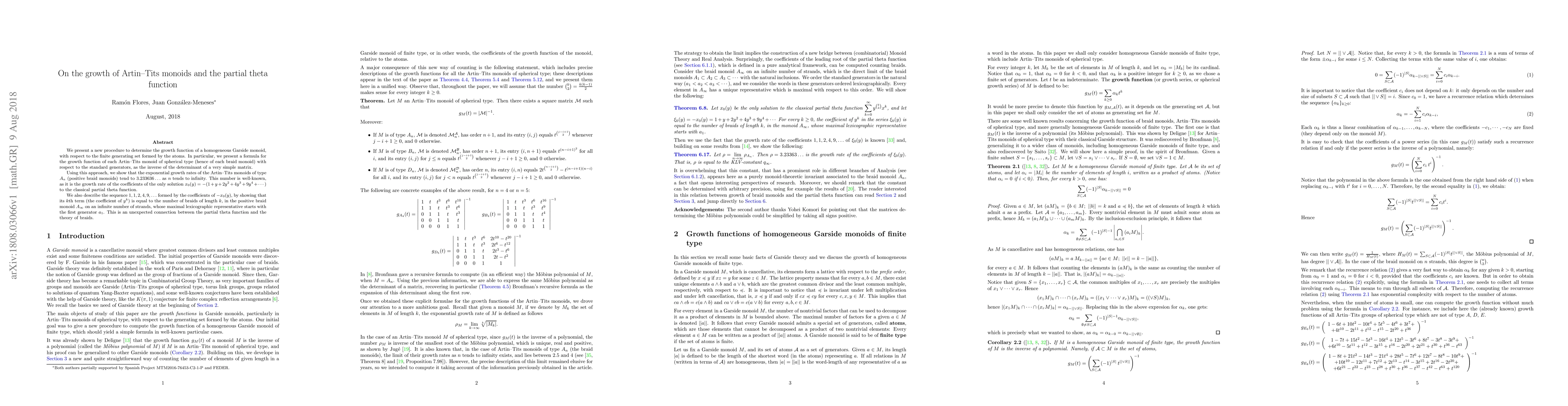 This paper introduces a new method for determining the growth function of homogeneous Garside monoids, specifically for Artin-Tits monoids of spherical type. It reveals that the exponential growth rate of these monoids approaches $3.233636\ldots$ as the dimension increases, a rate also linked to the coefficients of the partial theta function, revealing an unexpected connection between braid theory and this function.