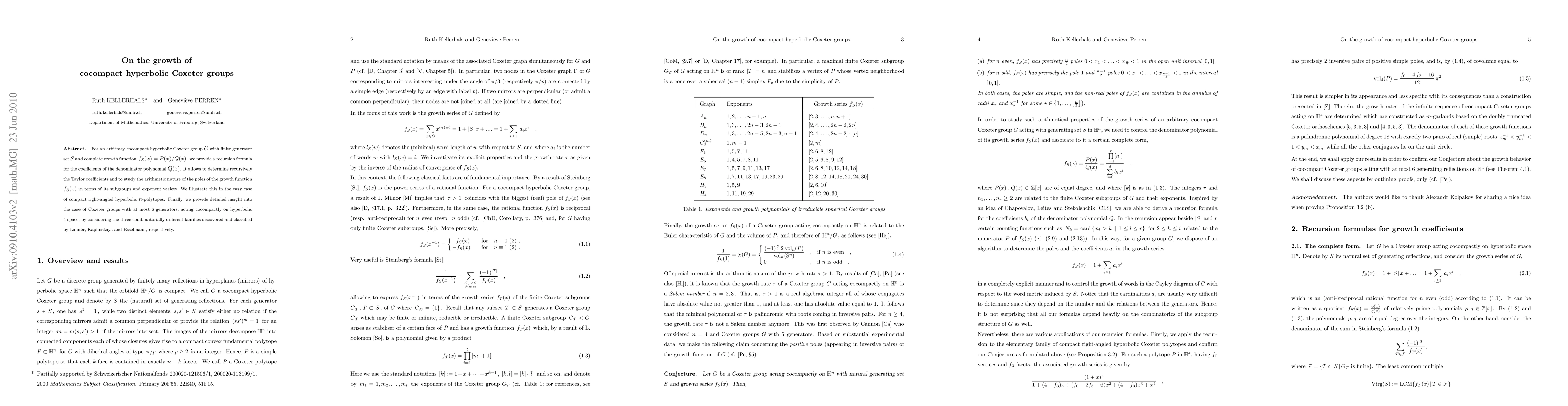 For an arbitrary cocompact hyperbolic Coxeter group G with finite generator set S and complete growth function P(x)/Q(x), we provide a recursion formula for the coefficients of the denominator polynomial Q(x) which allows to determine recursively the Taylor coefficients and the pole behavior of the growth function of G in terms of its Coxeter subgroup structure. We illustrate this in the easy case of compact right-angled hyperbolic n-polytopes. Finally, we provide detailed insight into the case of Coxeter groups with at most 6 generators, acting cocompactly on hyperbolic 4-space, by considering the three combinatorially different families discovered and classified by Lanner, Kaplinskaya and Esselmann, respectively.
