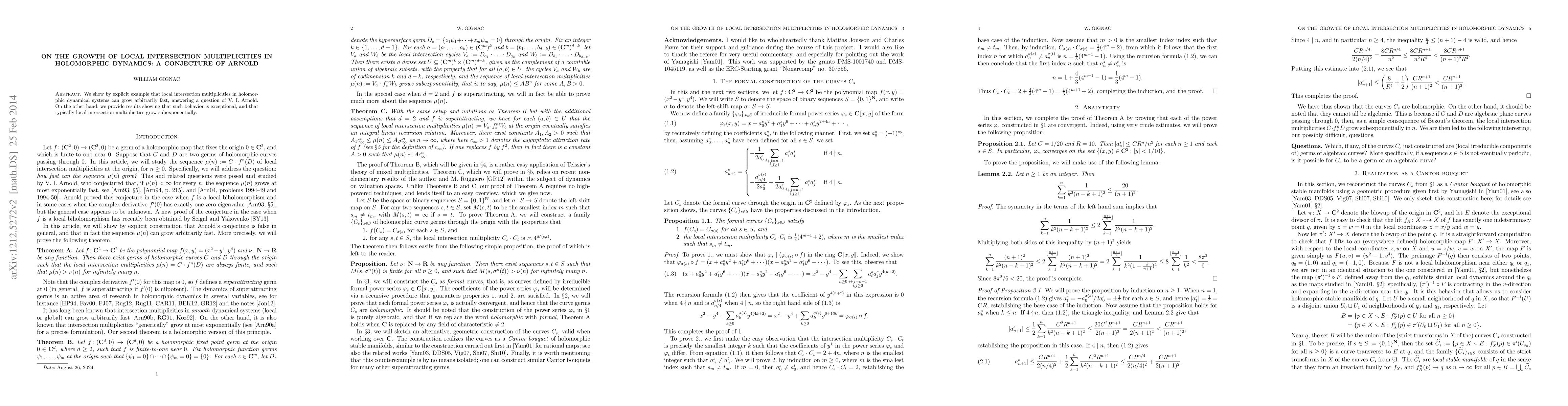 This paper demonstrates that local intersection multiplicities in holomorphic dynamical systems can grow rapidly, addressing Arnold's conjecture. It also shows that such rapid growth is rare, with typical multiplicities growing subexponentially.