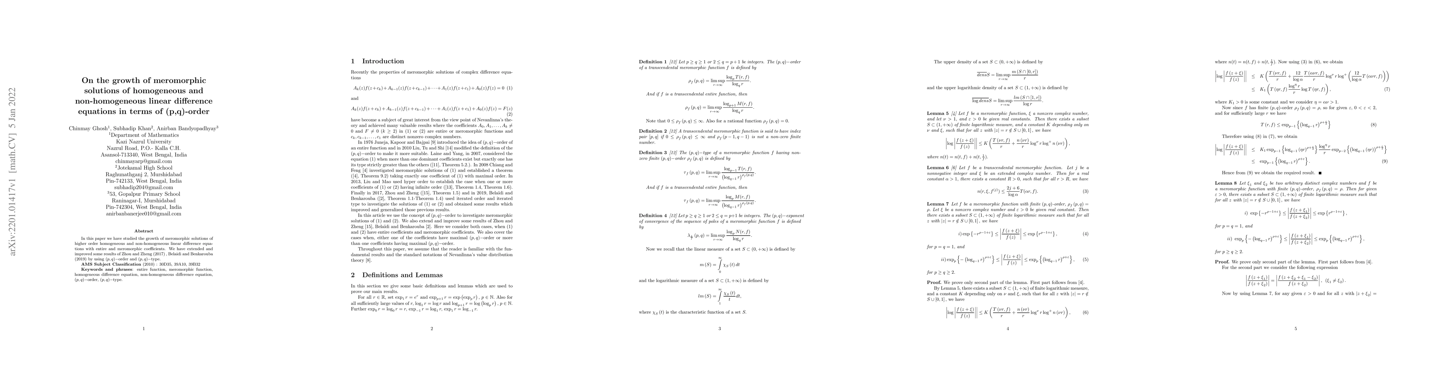 This paper investigates the growth of meromorphic solutions for higher-order homogeneous and non-homogeneous linear difference equations, employing (p,q)-order and (p,q)-type to extend and enhance prior results by Zhou and Zheng (2017) and Belaidi and Benkarouba (2019).