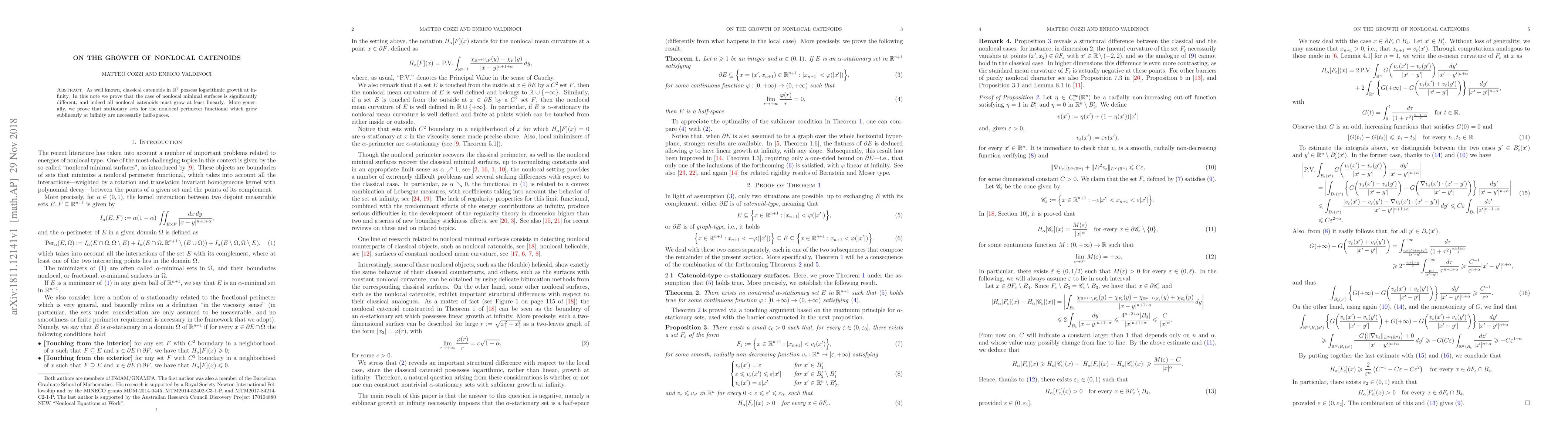As well known, classical catenoids in ${\mathbf{R}}^3$ possess logarithmic growth at infinity. In this note we prove that the case of nonlocal minimal surfaces is significantly different, and indeed all nonlocal catenoids must grow at least linearly. More generally, we prove that stationary sets for the nonlocal perimeter functional which grow sublinearly at infinity are necessarily half-spaces.