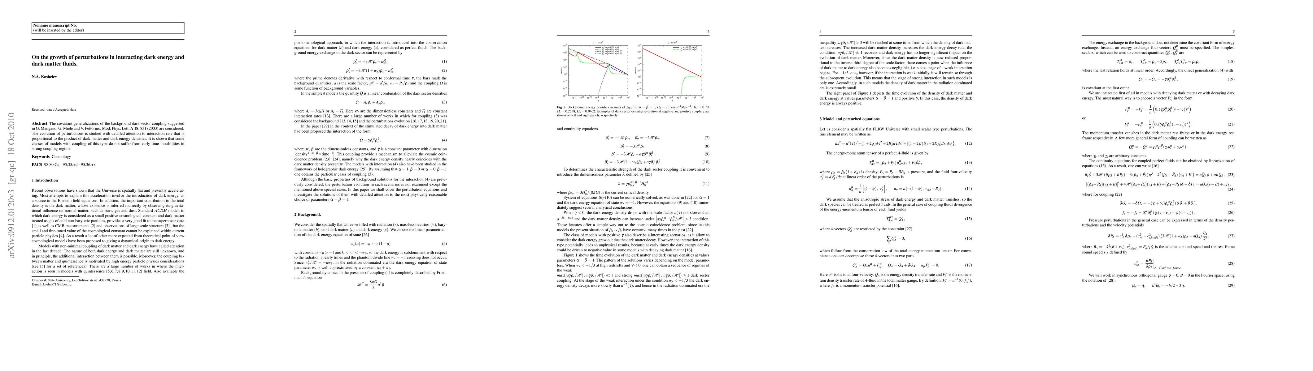 Researchers studied how perturbations in dark energy and dark matter fluids interact and found that certain models with a specific type of coupling can avoid early instabilities.