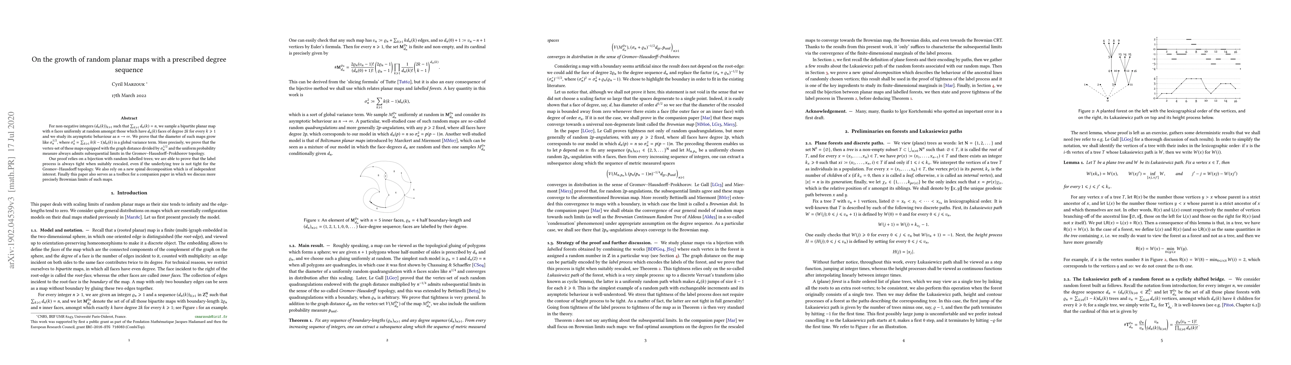 This paper studies the asymptotic behavior of random planar maps with a prescribed degree sequence, proving that their diameter grows like $\sigma_n^{1/2}$ where $\sigma_n^2$ is a global variance term. The authors demonstrate that these maps converge in the Gromov-Hausdorff-Prokhorov topology, using a bijection with random labelled trees and a new spinal decomposition technique.