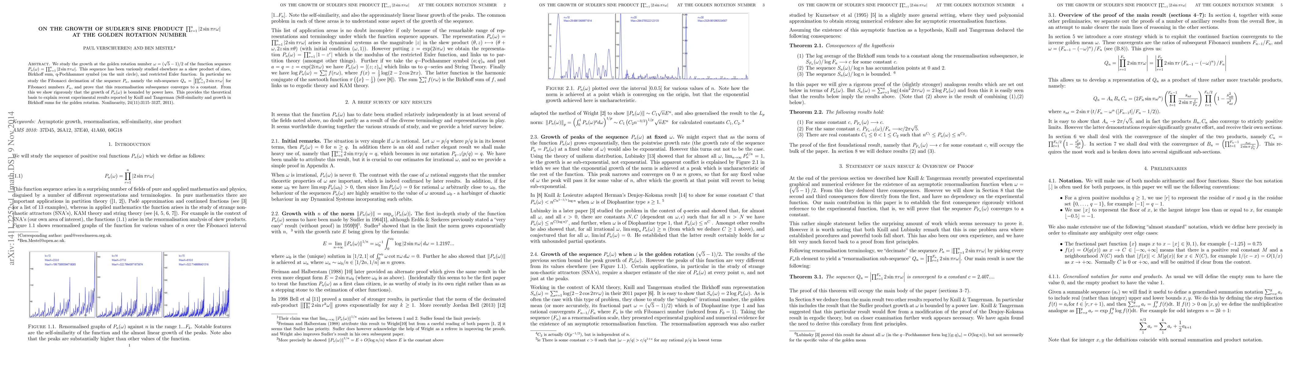 We study the growth at the golden rotation number of Sudler's sine product. This sequence has been variously studied elsewhere as a skew product of sines, Birkhoff sum, q-Pochhammer symbol (on the unit circle), and restricted Euler function. In particular we study the Fibonacci decimation of the sequence, and prove that the renormalisation subsequence converges to a constant. From this we show rigorously that the growth is bounded by power laws. This provides the theoretical basis to explain recent experimental results reported by Knill and Tangerman (Self-similarity and growth in Birkhoff sums for the golden rotation. Nonlinearity, 24(11):3115-3127, 2011).