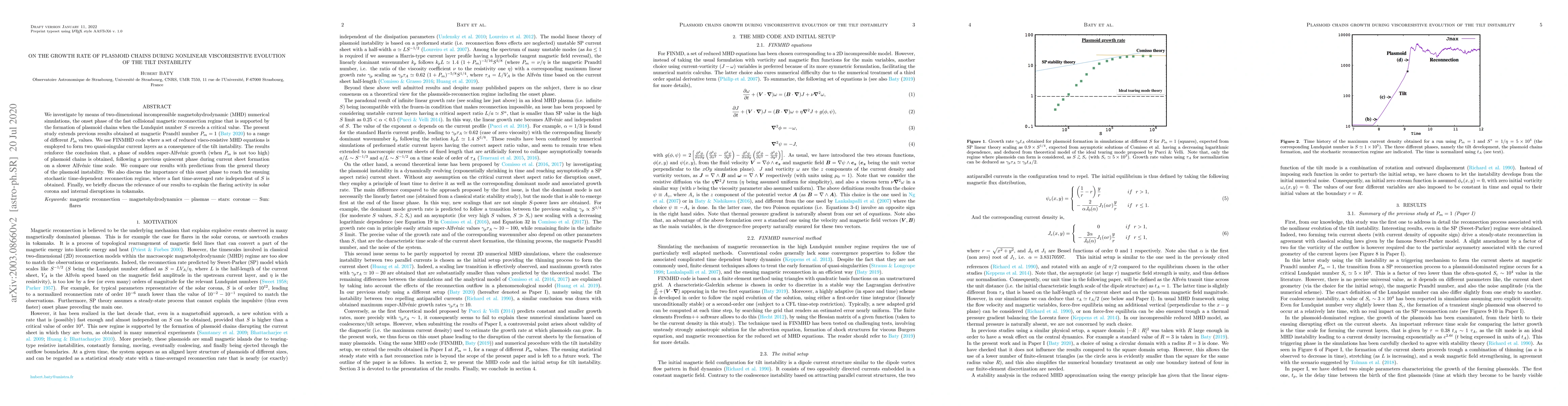 This study, using MHD simulations, examines the rapid growth of plasmoid chains in magnetic reconnection at varying magnetic Prandtl numbers. It confirms a phase of swift, super-Alfvenic growth following a slow, Alfvenic current sheet formation. The findings are compared to plasmoid instability theory and have implications for solar coronal flares and tokamak disruptions.