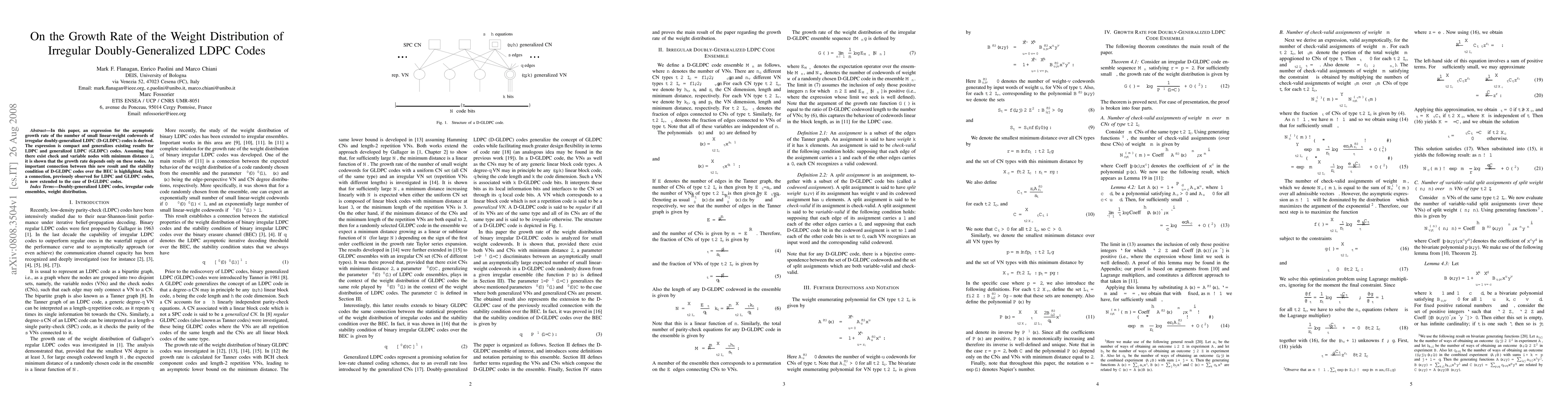 This paper derives an expression for the asymptotic growth rate of small linear-weight codewords in irregular doubly-generalized LDPC codes, generalizing existing results for LDPC and GLDPC codes. It shows that the growth rate depends on nodes with minimum distance 2 and highlights a connection to the stability condition of D-GLDPC codes over the BEC.