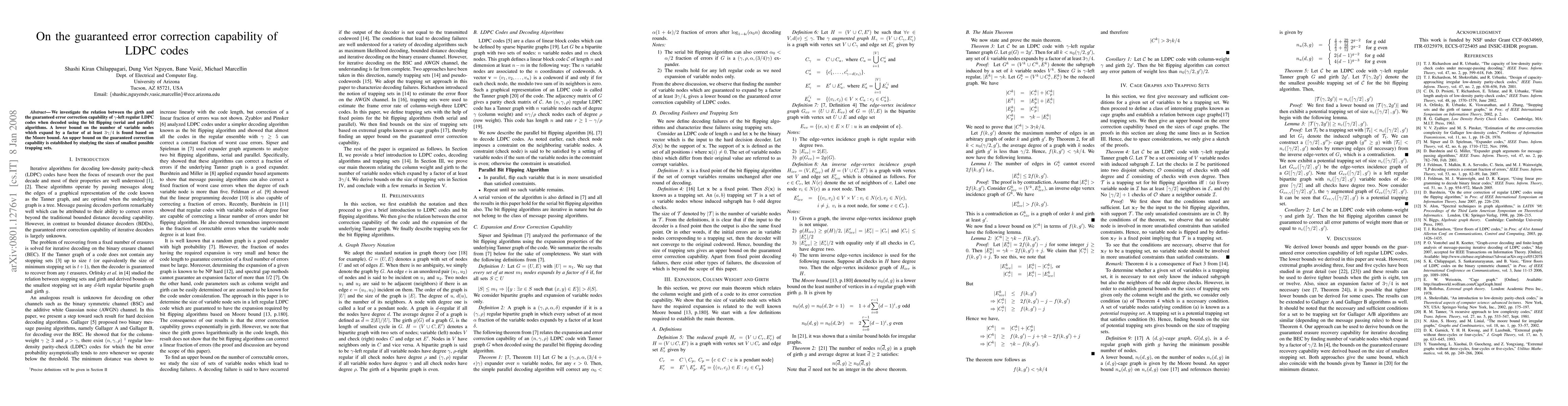 This paper explores the relationship between the girth of $\gamma$-left regular LDPC codes and their error correction capability when decoded via bit flipping algorithms. It establishes a lower bound on variable node expansion and an upper bound on the guaranteed error correction capacity by analyzing trapping sets.
